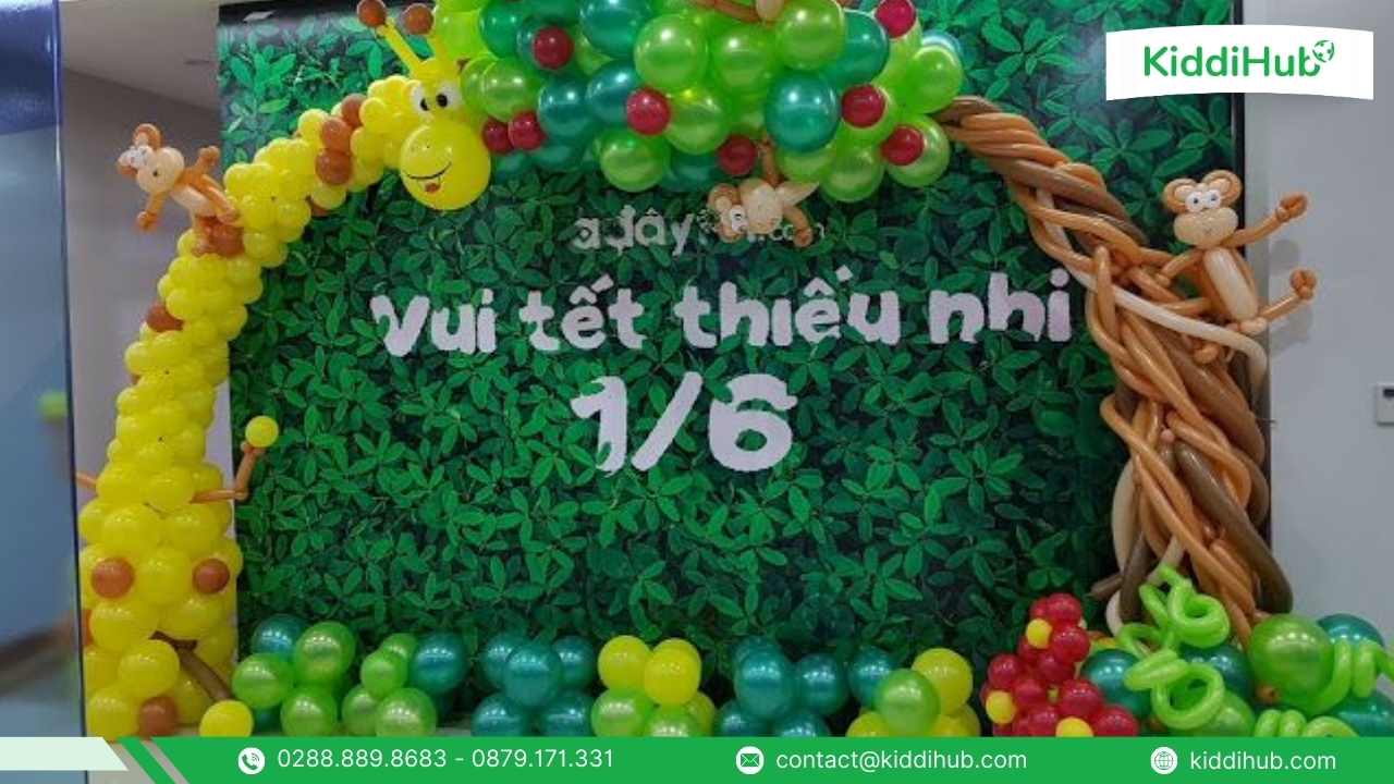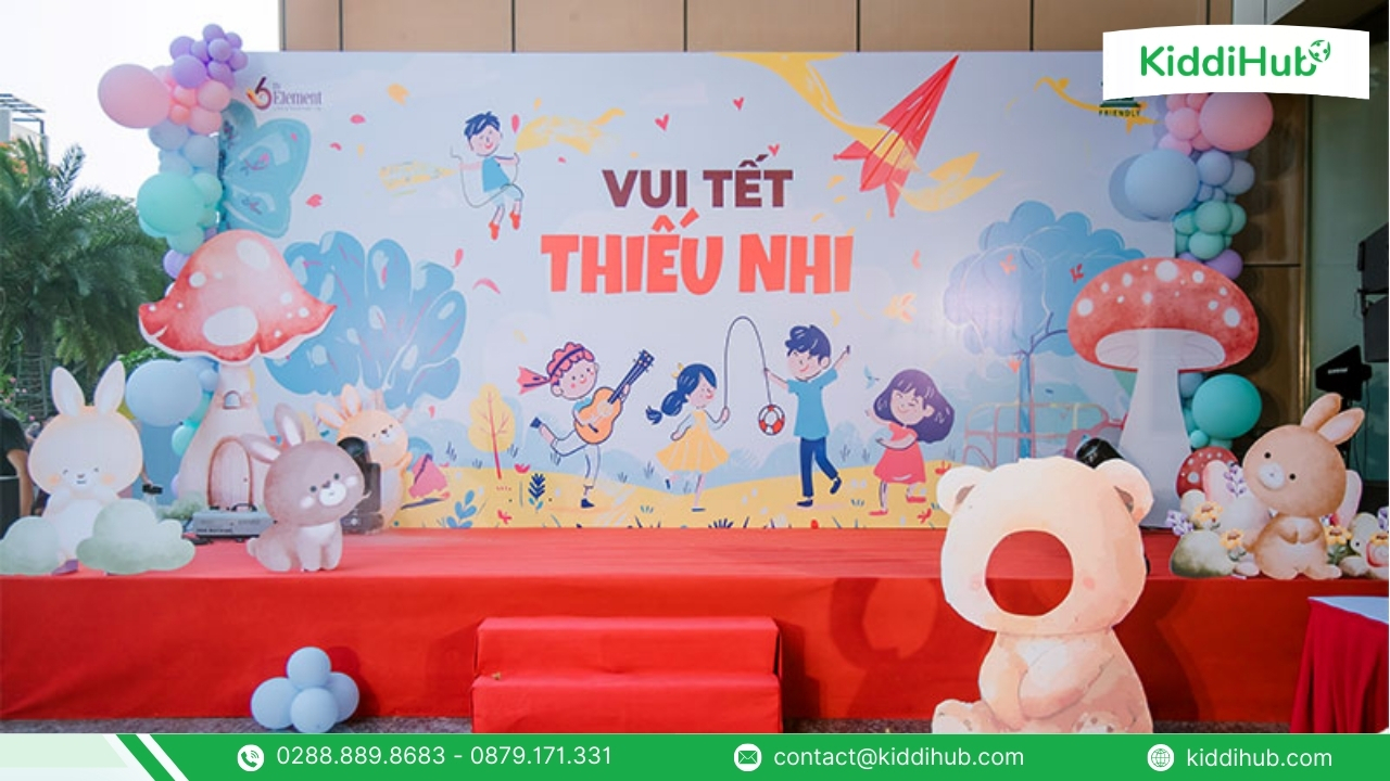 Trang trí tổng thể khu vực tổ chức sự kiện 1/6 cần được thực hiện đồng bộ, hài hòa giữa màu sắc, không gian và các hạng mục trang trí. Khi mọi khu vực được kết nối thống nhất, chương trình sẽ trở nên rực rỡ và cuốn hút hơn. Cùng KiddiHub, ba mẹ và nhà trường có thể dễ dàng tham khảo nhiều ý tưởng trang trí phù hợp, tạo nên một ngày Tết Thiếu nhi trọn vẹn cho các bé.