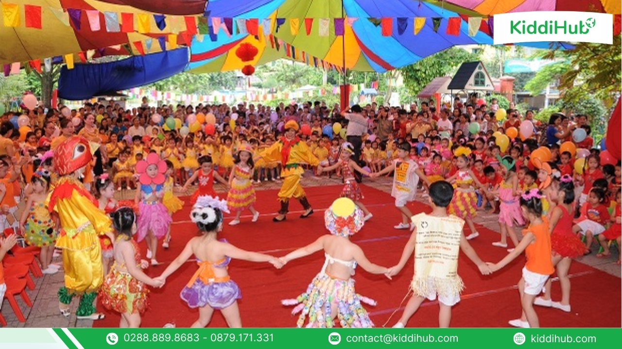 Trang trí ngày 1/6 thường gắn liền với các chương trình văn nghệ, trò chơi, hoạt động trải nghiệm. Qua đó, trẻ có cơ hội giao lưu, học hỏi, rèn luyện kỹ năng giao tiếp và tinh thần đoàn kết.