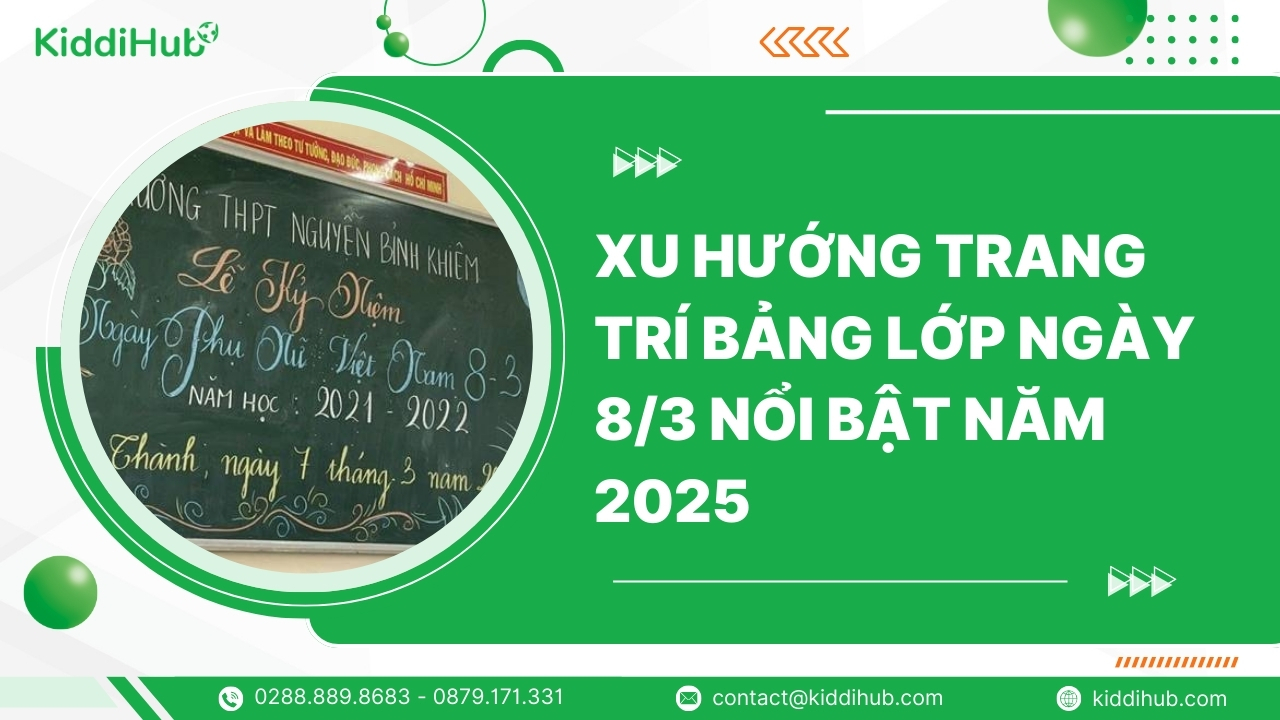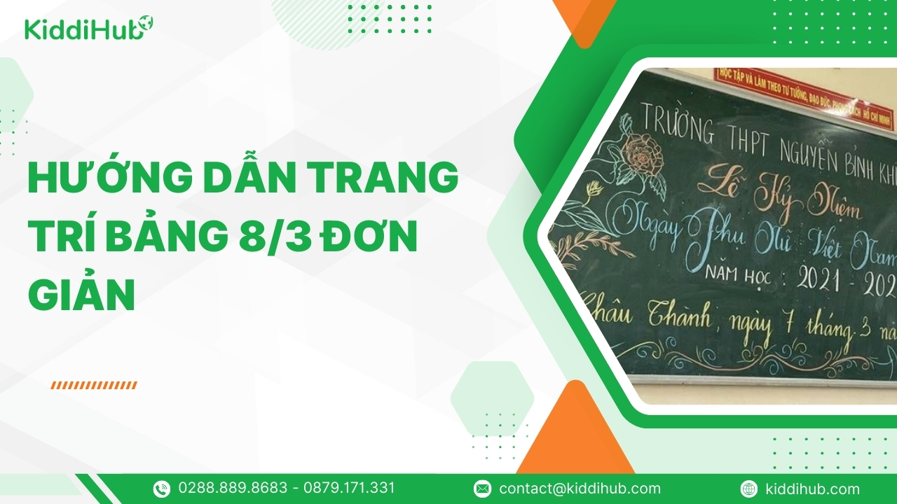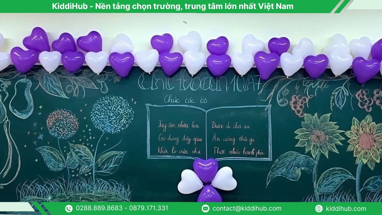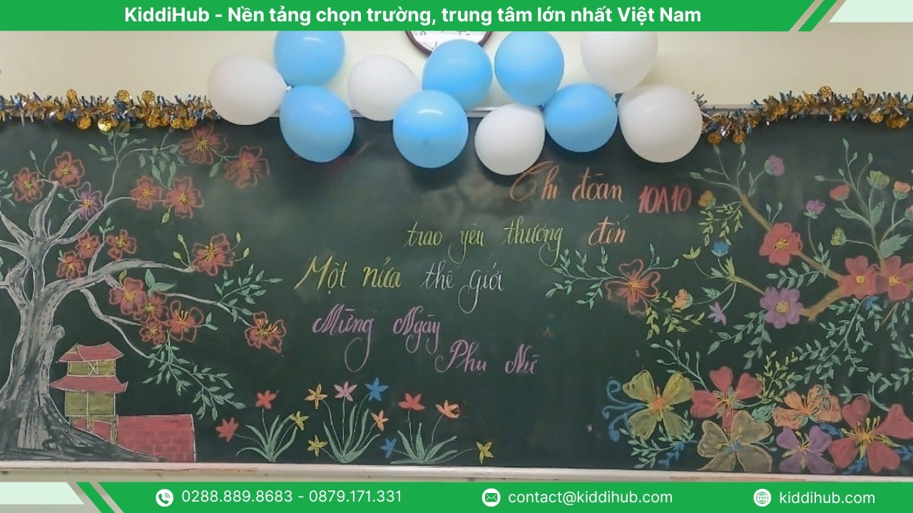 Trang trí bảng ngày 8/3 không chỉ giúp lớp học thêm tươi vui mà còn là cách thể hiện lòng biết ơn và sự tri ân đối với phụ nữ. Bảng lớp có thể được trang trí bằng phấn màu, hoa giấy, bóng bay hoặc các phụ kiện nhỏ xinh, tạo nên không gian vừa sinh động vừa ý nghĩa. Trong bài viết này KiddiHub sẽ gợi ý những mẫu trang trí bảng ngày 8/3 dễ thực hiện, giúp bạn biến bảng lớp trở nên nổi bật và tràn đầy cảm xúc.
