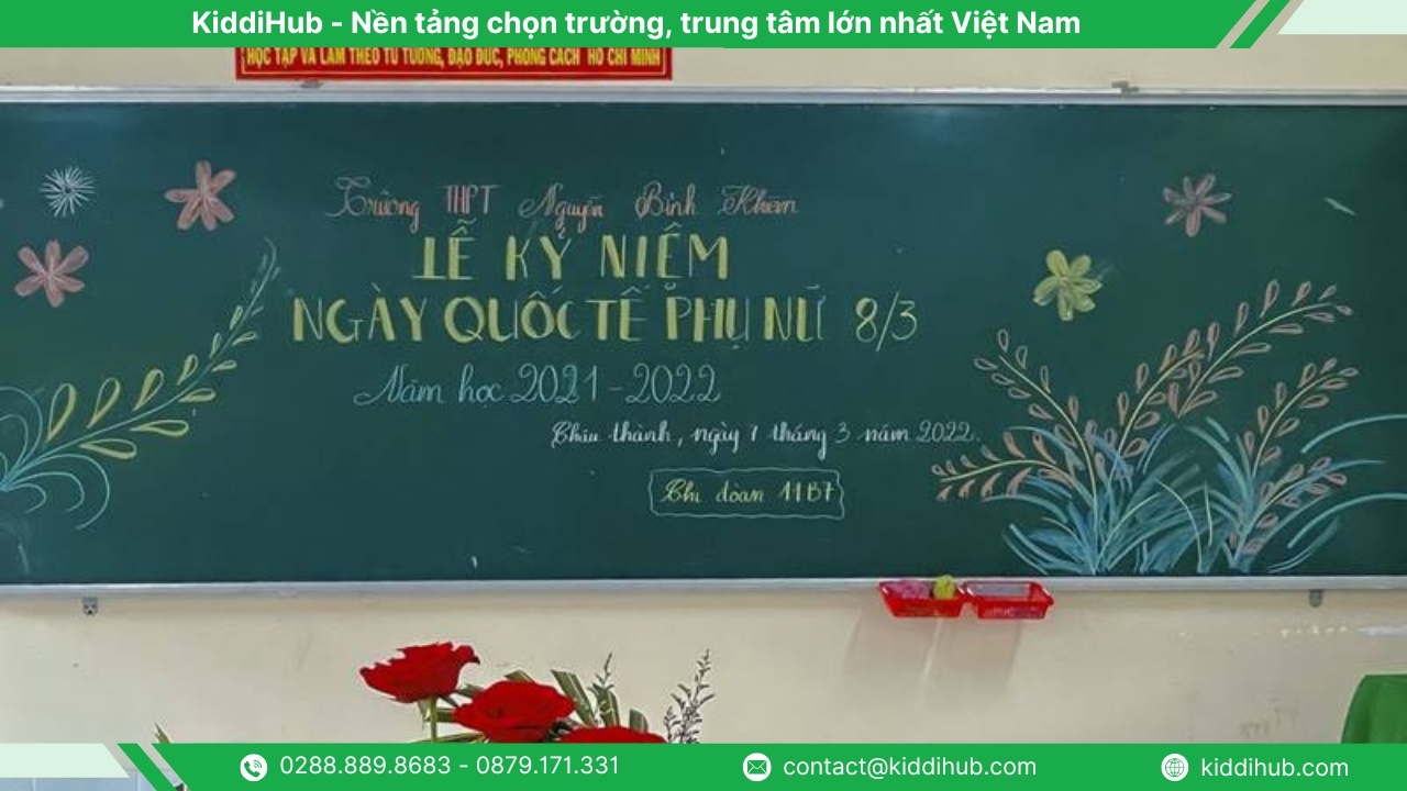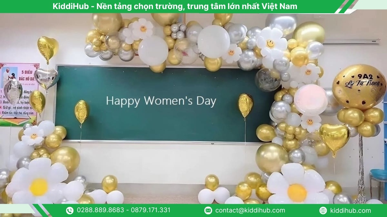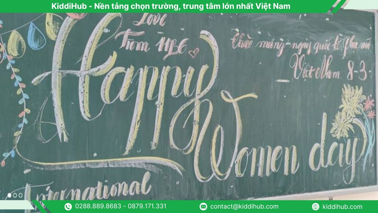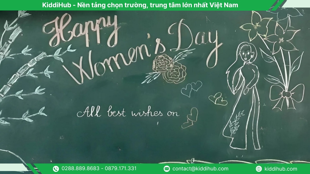 Hy vọng những mẫu mà KiddiHub đã tổng hợp ở trên sẽ giúp bạn thực hiện trang trí bảng ngày 8/3 vừa đẹp mắt, vừa ý nghĩa. Những chi tiết như phấn màu, hoa giấy, bóng bay hay các phụ kiện nhỏ xinh sẽ tạo nên không gian lớp học sinh động, vui tươi. Qua đó, học sinh có thể gửi lời tri ân chân thành đến cô giáo và những người phụ nữ xung quanh.
