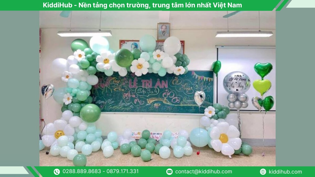 Bên cạnh phấn, việc sử dụng bóng bay và giấy dán cũng là cách làm phổ biến để trang trí bảng cho những ngày lễ đặc biệt. Nếu bạn muốn biến bảng lớp trở nên bắt mắt và sinh động hơn, hãy tham khảo những gợi ý trang trí bằng bóng bay đơn giản mà hiệu quả dưới đây.