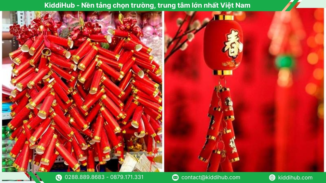 Dây pháo đỏ từ lâu đã trở thành hình ảnh quen thuộc mỗi dịp Tết đến, thường được sử dụng để tạo điểm nhấn nổi bật cho cây đào. Màu đỏ tươi thắm của dây pháo không chỉ làm cho không gian thêm rộn ràng, sinh động mà còn mang ý nghĩa cầu chúc may mắn, thu hút tài lộc và mang đến sự sung túc, phồn vinh cho gia đình trong năm mới.