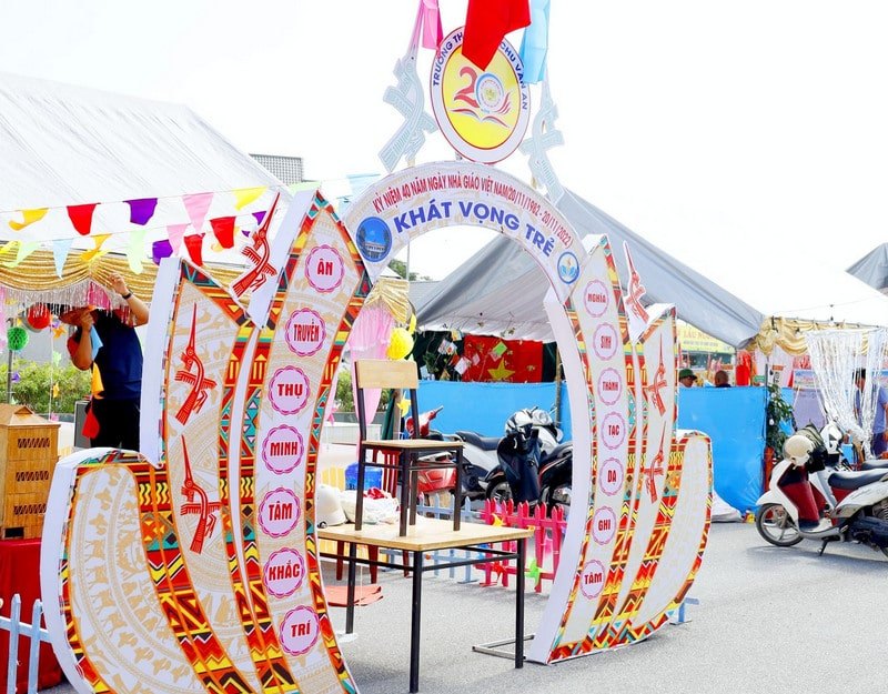 Để cổng trại thêm ý nghĩa, bạn có thể sáng tạo các mô hình tượng trưng như chiếc đò tri thức, quyển sách mở, bảng phấn, cây bút hoặc ngọn nến. Những hình ảnh này vừa gần gũi vừa gợi nhớ đến công lao của thầy cô trong sự nghiệp trồng người.