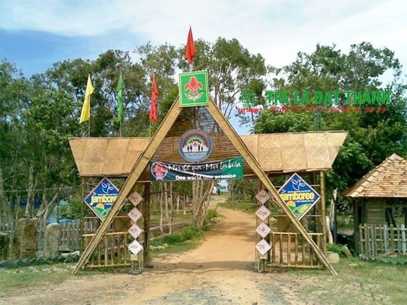 Nhắc đến những mẫu cổng trại đẹp 20 11, không thể bỏ qua chất liệu tre nứa, biểu tượng của làng quê Việt Nam, mang đến vẻ gần gũi, giản dị nhưng vẫn đầy tinh tế. Tre có độ dẻo cao, dễ tạo hình và phù hợp với nhiều phong cách thiết kế khác nhau. Các bạn học sinh có thể sử dụng tre to để dựng khung chính, tre nhỏ để làm các chi tiết trang trí.