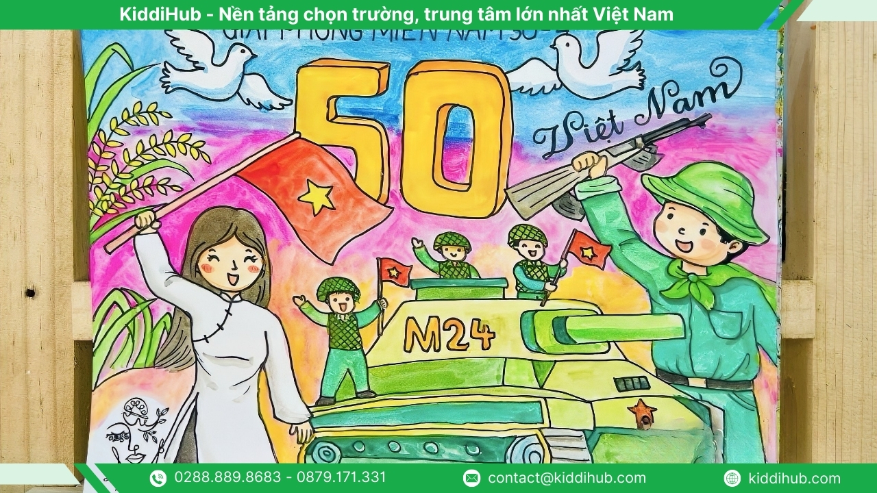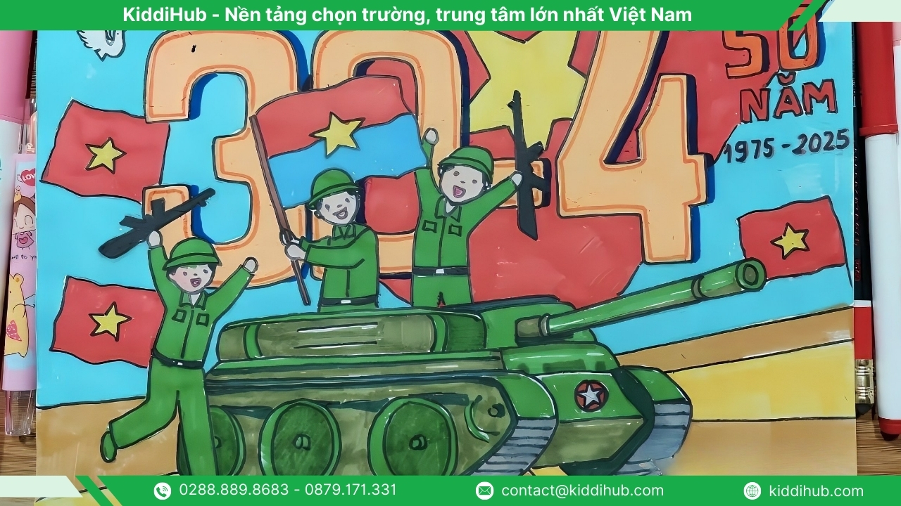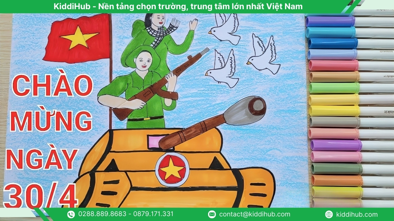 Có thể thấy, tranh 30 4 không chỉ là sản phẩm nghệ thuật đơn thuần mà còn là cầu nối giúp trẻ em và thế hệ trẻ hiểu hơn về lịch sử, hun đúc lòng yêu nước và niềm tự hào dân tộc. Thông qua hoạt động vẽ tranh, các em được bày tỏ cảm xúc, suy nghĩ của mình về ngày lễ trọng đại này một cách tự nhiên, sáng tạo. KiddiHub hy vọng sẽ tiếp tục đồng hành, mang đến nhiều nội dung giáo dục ý nghĩa và gần gũi cho phụ huynh, giáo viên và trẻ em.