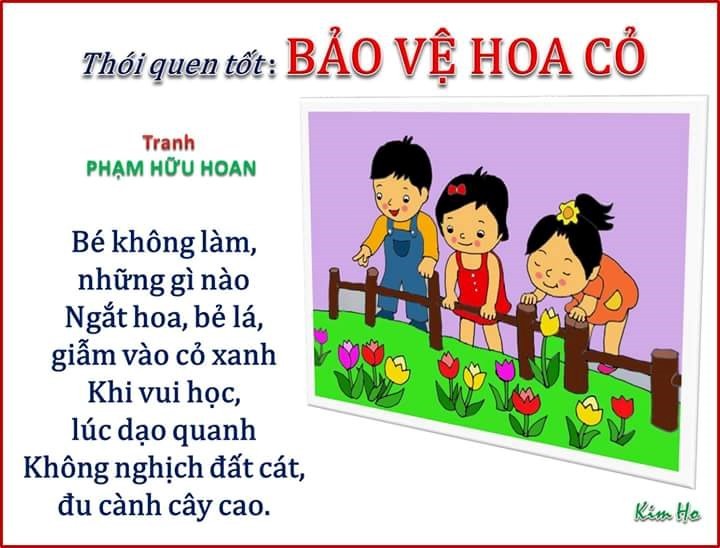 Bức tranh “Bảo vệ hoa cỏ” vẽ lên một cảnh tượng bình yên giữa thiên nhiên, nơi những loài hoa rực rỡ khoe sắc dưới ánh mặt trời ấm áp. Một nhóm trẻ em đang chăm sóc và bảo vệ từng bông hoa, cây cỏ, tránh khỏi những tác động xấu từ môi trường. Màu sắc trong tranh tươi sáng, rực rỡ, toát lên sự tươi mới và sức sống của thiên nhiên. Bức tranh nhấn mạnh thông điệp bảo vệ môi trường và yêu thương cây cỏ, giúp thiên nhiên luôn xanh tươi.