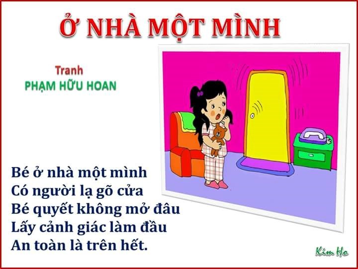 Bức tranh “Ở nhà một mình” khắc họa một không gian yên tĩnh và ấm cúng, với một em bé đang ngồi trong phòng khách rộng rãi, ánh sáng nhẹ nhàng từ cửa sổ chiếu vào. Lúc đó có người lạ gõ cửa và bé nhất quyết không mở cửa khi ở nhà một mình.