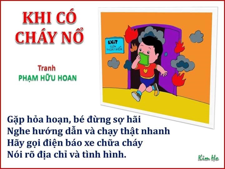Bức tranh “Khi có cháy nổ” miêu tả một cảnh tượng căng thẳng và hỗn loạn, với những đám khói đen bốc lên từ đám cháy dữ dội.Em bé đang lấy khăn che mũi chạy thật nhanh ra bên ngoài. Cảnh vật xung quanh đầy căng thẳng, nhưng cũng thể hiện sự quyết tâm và nỗ lực không ngừng của mọi người để đảm bảo an toàn. Bức tranh phản ánh sự khẩn trương và tinh thần đoàn kết trong những tình huống khẩn cấp.