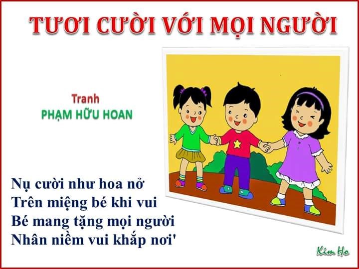 Bức tranh “Tươi cười với mọi người” miêu tả một cảnh tượng đầy ấm áp và vui vẻ. Những người xung quanh,các em nhỏ, đều nở nụ cười rạng rỡ, ánh mắt đầy thân thiện và vui vẻ. Họ đứng cùng nhau trong một không gian thoải mái vui chơi tại công viên. Màu sắc tươi sáng của bức tranh như làm nổi bật không khí hòa nhã, thân thiện, phản ánh thông điệp về sự gần gũi và tình cảm giữa con người với nhau.