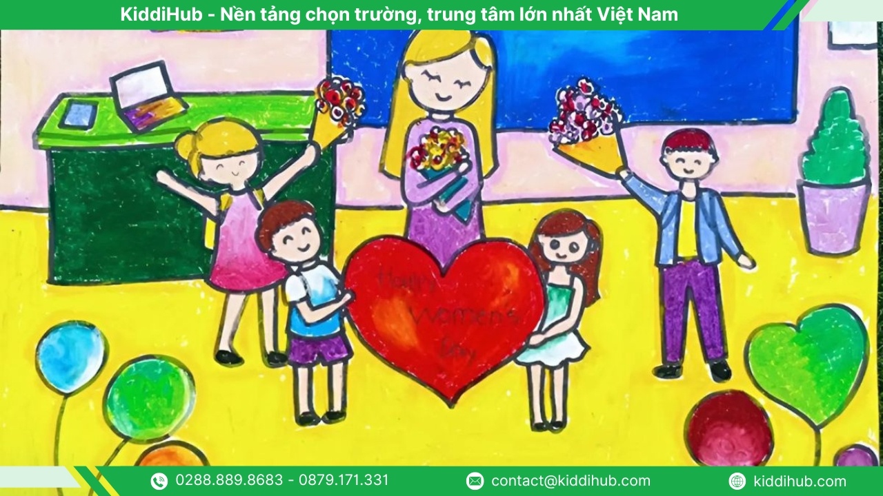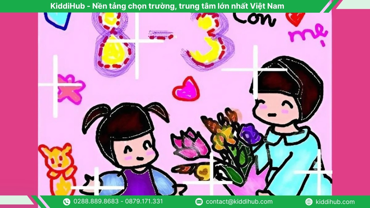 Nhân dịp 8/3, những tác phẩm thủ công đầy sáng tạo luôn là cách tuyệt vời để bày tỏ tình cảm và lòng biết ơn với mẹ, cô giáo hay bà. Những tranh vẽ 8/3 đẹp nhất không chỉ rực rỡ về màu sắc mà còn chứa đựng thông điệp yêu thương sâu sắc, khiến người nhận cảm thấy hạnh phúc và trân trọng. Trong bài viết này KiddiHub sẽ tổng hợp những mẫu tranh vẽ 8/3 đẹp nhất để bạn tham khảo và tạo nên món quà tinh thần ý nghĩa.