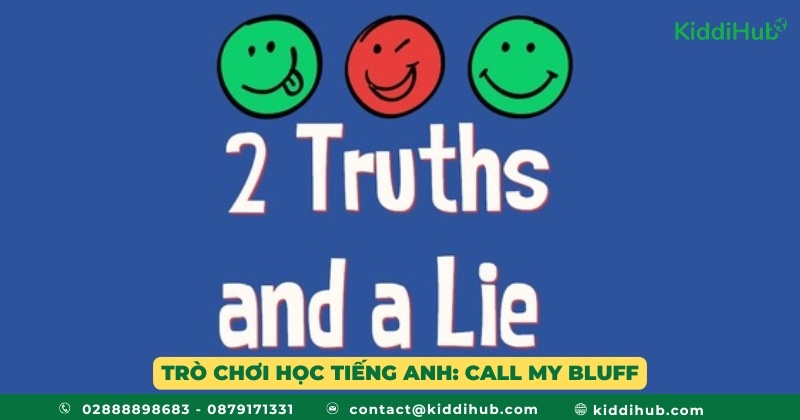Trò chơi "Call My Bluff" là một hoạt động tuyệt vời để khởi động các lớp học tiếng Anh cho trẻ mới bắt đầu. Cách chơi rất đơn giản: giáo viên sẽ chia sẻ ba thông tin về bản thân, trong đó chỉ có hai thông tin là đúng. Nhiệm vụ của các bé là phải thảo luận với bạn bè và tìm ra thông tin sai. Trong suốt trò chơi, trẻ sẽ có cơ hội đặt câu hỏi bằng tiếng Anh để hiểu rõ hơn và giúp tìm ra câu trả lời chính xác.