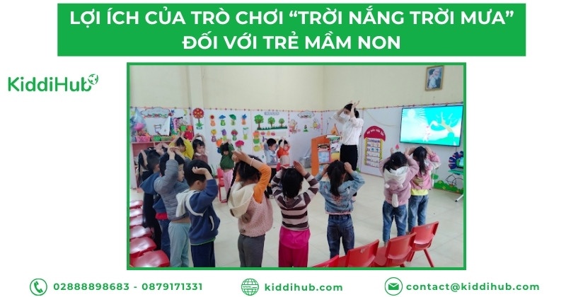 Trò chơi trời nắng trời mưa không chỉ là những phút giây vui đùa hồn nhiên mà còn là hành trình trẻ học cách lắng nghe, hợp tác và sống chan hòa cùng tập thể. Chỉ từ một trò chơi giản dị, trẻ được vun bồi kỹ năng, cảm xúc và cả những bài học làm người đầu tiên trong đời. Hãy cùng KiddiHub mang đến cho con những trải nghiệm chơi mà học trọn vẹn, để tuổi thơ luôn rộn rã tiếng cười và lớn lên trong yêu thương, kết nối.