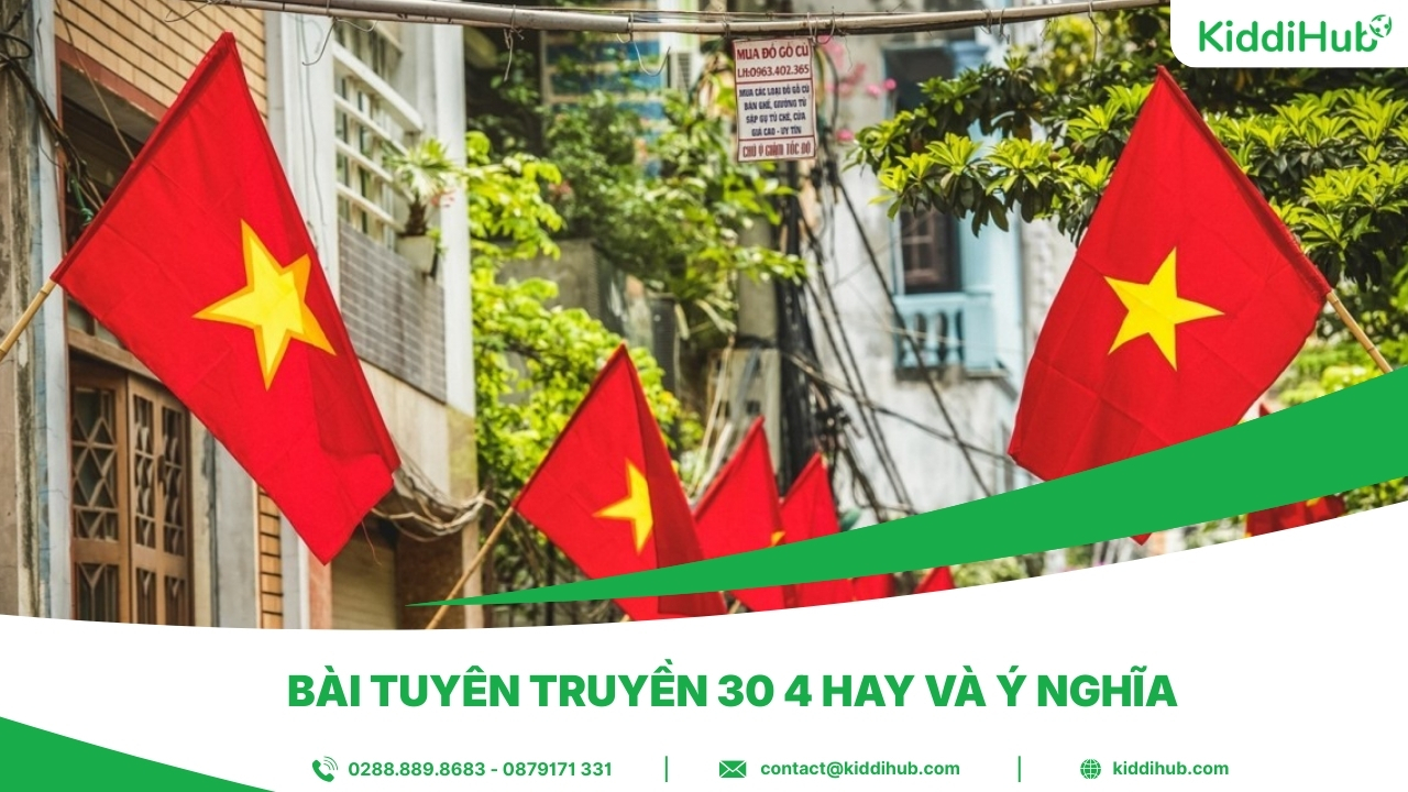Tuyên truyền 30 4 là hoạt động có ý nghĩa sâu sắc nhằm ôn lại dấu mốc lịch sử vẻ vang của dân tộc, khơi dậy lòng tự hào, tinh thần yêu nước và trách nhiệm của mỗi người trong công cuộc xây dựng đất nước hôm nay. Thông qua tuyên truyền, giá trị của hòa bình, độc lập và thống nhất được lan tỏa rộng rãi tới mọi thế hệ. Trong bài viết này KiddiHub sẽ gợi ý cho bạn những mẫu bài tuyên truyền hay, ý nghĩa và cùng bạn tìm hiểu rõ hơn về ý nghĩa và nội dung tuyên truyền 30 4.