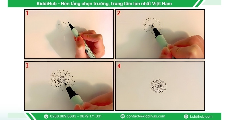Bước 1: Trước tiên, hãy vẽ một vòng tròn nhỏ bằng những nét chấm để làm nhụy hoa. Tiếp theo, thêm vài chấm nhỏ bên trong vòng tròn để nhụy hoa trở nên tự nhiên và sinh động hơn.