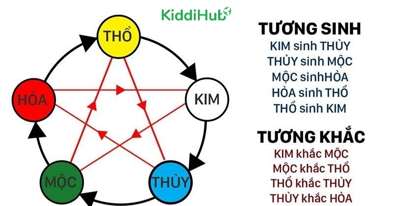 Ngũ hành (Kim, Mộc, Thủy, Hỏa, Thổ) là yếu tố cốt lõi khi "xem tuổi con và bố mẹ có hợp nhau không". Theo phong thủy, mỗi người sinh ra đều mang một mệnh ngũ hành dựa trên năm sinh, và mối quan hệ giữa các mệnh này quyết định mức độ hợp tuổi. Quy luật tương sinh bao gồm: Mộc sinh Hỏa, Hỏa sinh Thổ, Thổ sinh Kim, Kim sinh Thủy, Thủy sinh Mộc, tượng trưng cho sự hỗ trợ và phát triển. Ngược lại, quy luật tương khắc là: Mộc khắc Thổ, Thổ khắc Thủy, Thủy khắc Hỏa, Hỏa khắc Kim, Kim khắc Mộc, biểu thị sự xung đột năng lượng.