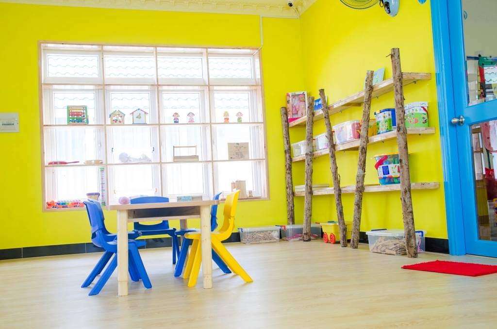Khu vực trong nhà, trẻ có phòng vui chơi sinh hoạt chung theo lứa tuổi (từ 6 tháng tới 3 tuổi và từ 3 tới 6 tuổi) với cách bài trí học cụ, đồ chơi theo độ tuổi, đúng theo chuẩn của Mô hình HighScope. Bước vào khu vui chơi, trẻ sẽ háo hức khám phá và học hỏi qua những trò chơi dưới sự hỗ trợ của giáo viên.