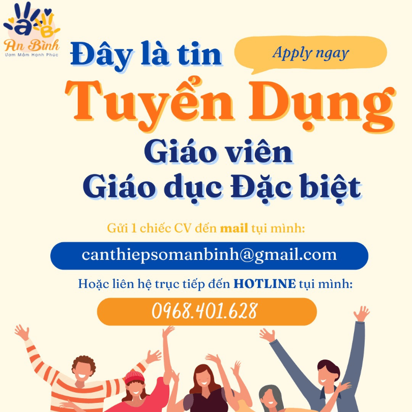 📥Ứng tuyển: Inbox trực tiếp trang fanpage: Can thiệp Sớm An Bình hoặc gửi CV về địa chỉ email: canthiepsomanbinh@gmail.com