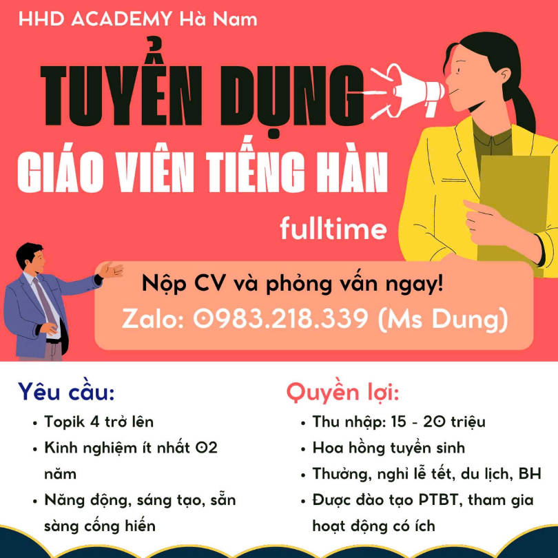 HHD ACACEMY HÀ NAM TUYỂN DỤNG GIÁO VIÊN TIẾNG HÀN
