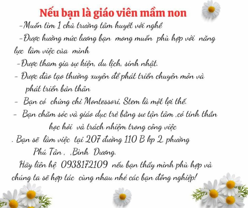 Bạn là một giáo viên mầm non đam mê nghề, đang tìm kiếm một môi trường làm việc chuyên nghiệp và đầy đam mê?